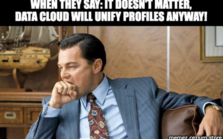 The way it works: clean data, great insights. The way they think it works: pour in everything, Data Cloud will clean it.