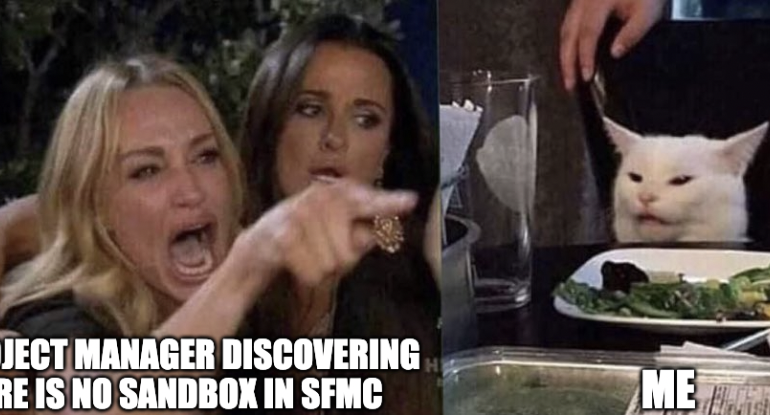 Salesforce Marketing Cloud does not offer standalone sandbox environments. You may need an additional Business Unit or even instance. And maybe your customer didn’t purchase additional Business Units… Anyway, when the multi-cloud project manager discovers there’s no sandbox it’s always
